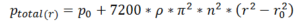 ptotal(r) Das Ergebnis, einer Schichtweisen Dynamischen Druckerhöhung, in einer Rotierenden Wasserseule, vom Mittelpunkt aus berechnet ( r) [Pa]